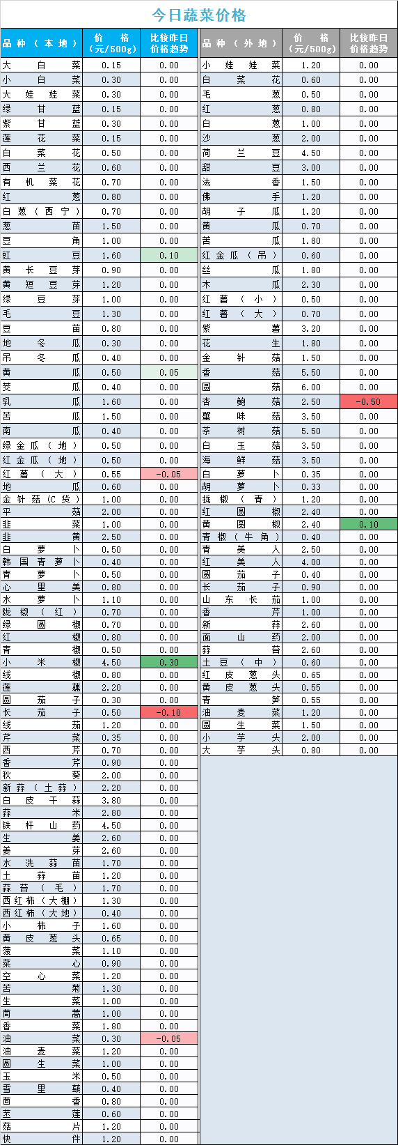 | 西红柿(外地) | 1.2 | 1 | 0.6 |